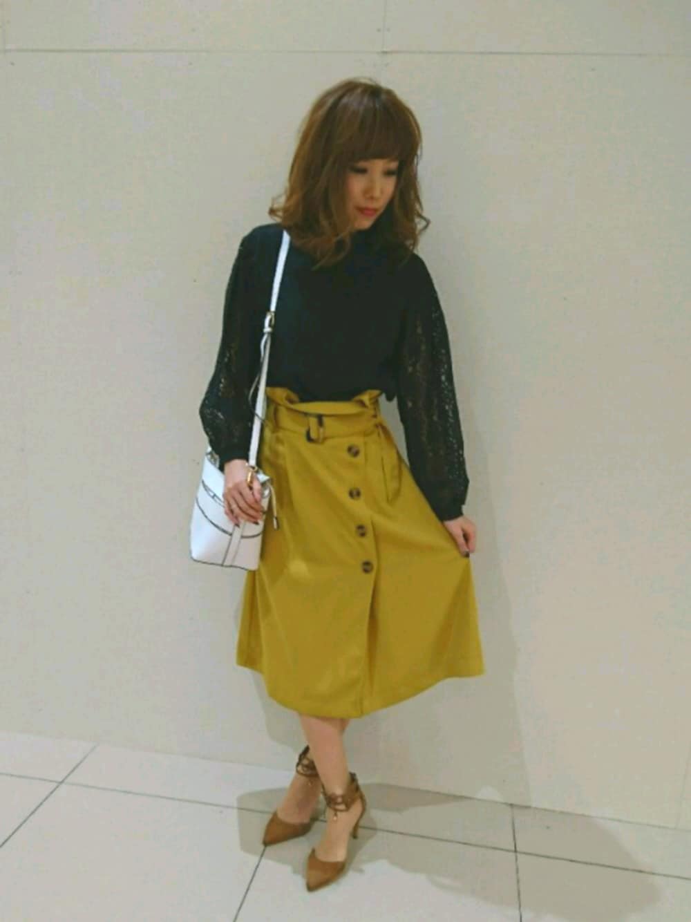 今年トレンドのレーストップス🎵 黒で甘くなりすぎず、地味にならないようイエローのスカートであわせてみました(*´∀`)❤️ ☆黒&イエローで大人っぽく☆ 小物で春🌸感をだしてみましたぁ☺️ 早く1枚で出掛けれる程、暖かくなってほしいですね(*´ω`*) 春もぉ➰そこまで(*´ω`*)❤️❤️
