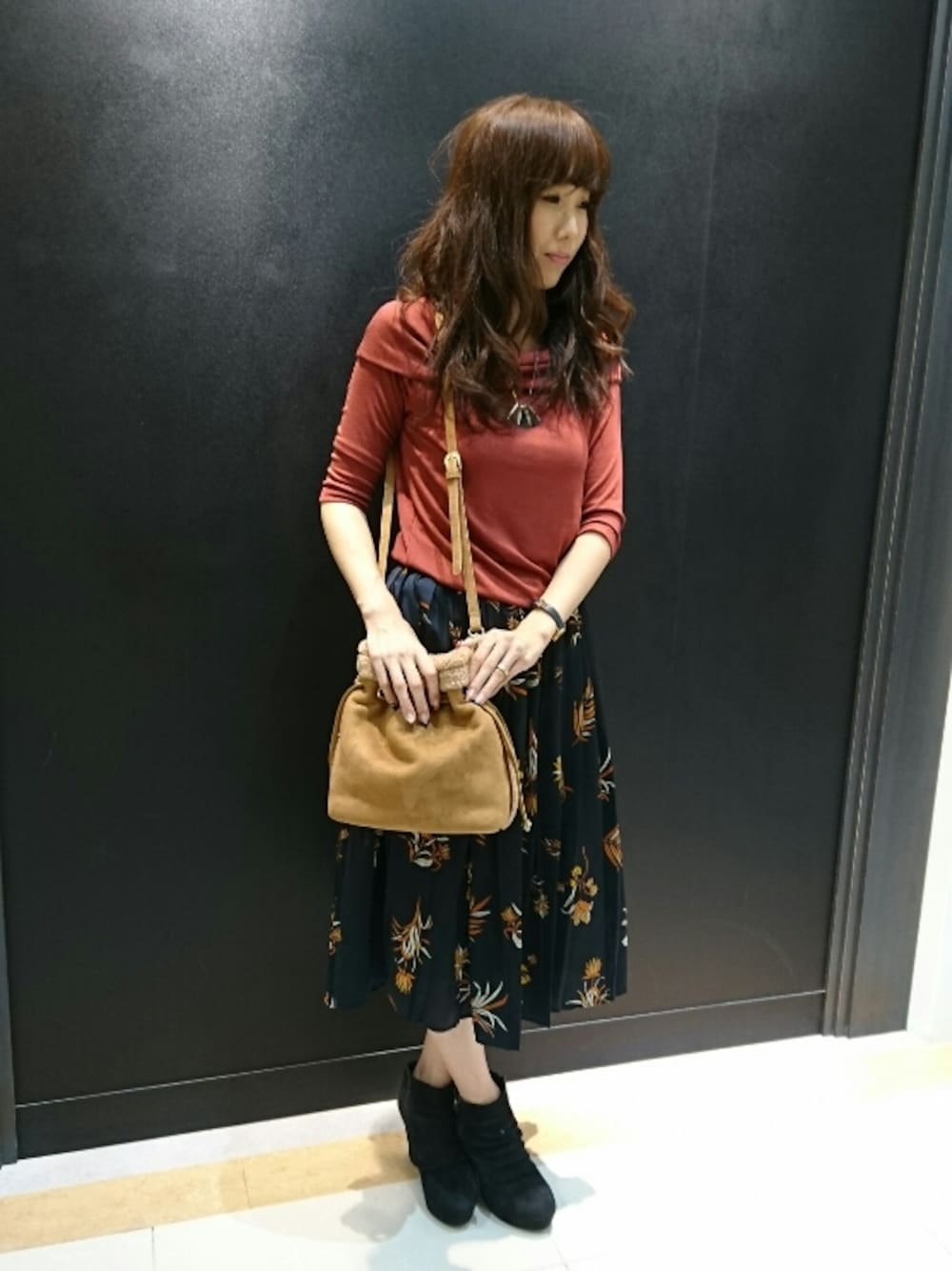 昨日からめっちゃ雨が凄い広島です。。。 皆様気を付けて下さいね(´д`|||) 今日は、2WAYで着回せる凄く肌触りの良いトップスにレトロ花柄プリントのスカートで合わせてみました❤ そして、アクセントにコロンとしたバックをもってきました❤ いつもいいね👍にSAVEとありがとうございます☺嬉しいです(*´ω`*)