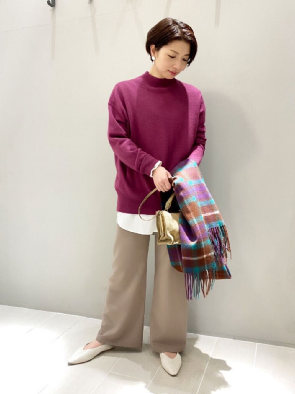 いつもご覧頂きありがとうございます。 本日のコーディネートのポイントは、、、パンツ! お出掛けにもお仕事にも着回し万能な 【qualite】裏起毛ストレッチレギンスパンツ。 程よく艶があり柔らかく滑らかなストレッチ素材。 薄地なのに、裏に起毛素材を使っているので、真冬でも穿いて頂けます! 落ち感のあるシルエットで、太ももなどのラインをひろいません!! スニーカーでカジュアルスタイルに♪ シャツやブラウスを合わせたお仕事スタイルにも♪♪ リラックススタイルでおうち時間にも♪♪ どんなスタイルにも着回して出来て、ストレス無くとても穿きやすい万能パンツです(^^) ◆裏起毛ストレッチレギンスパンツ No.32410050023 ◇ライトフェザーウールタートルネックニット No.32410840007 ◆コットンビエラシャツ No.32410010012 ◇【TWEEDMILL】チェックストール No.31410260001