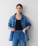 ご覧いただきありがとうございます。 【e×qualiteオーバーデニムジャケット】インディゴコーデ♪ 製品染めのロンTにさらりとデニムジャケットを羽織ったシンプルカジュアルコーデ。 ボトムには、センタープレスが効いたコットン素材のハイウエストストレートパンツ。 スタイルアップで大人っぽく品のあるカジュアルスタイルにしてくれます(^^♪