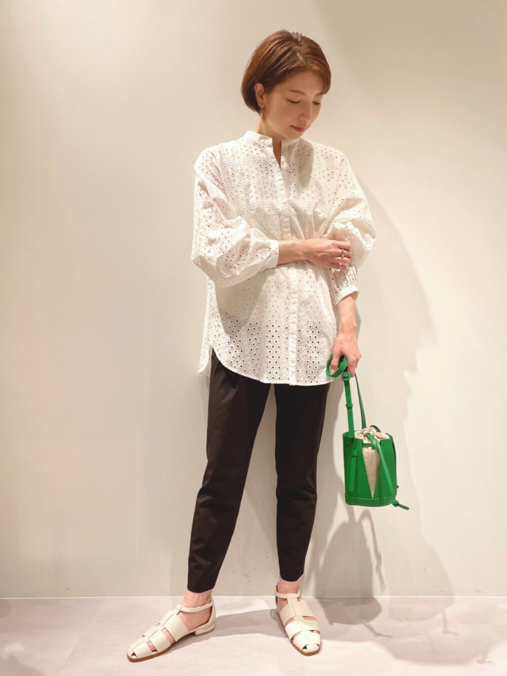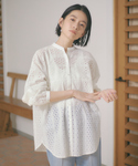 KAWAMURA(カリテ エスパル仙台東館店)のシャツ/ブラウス「バンドカラーレースシャツ」を使ったコーディネート