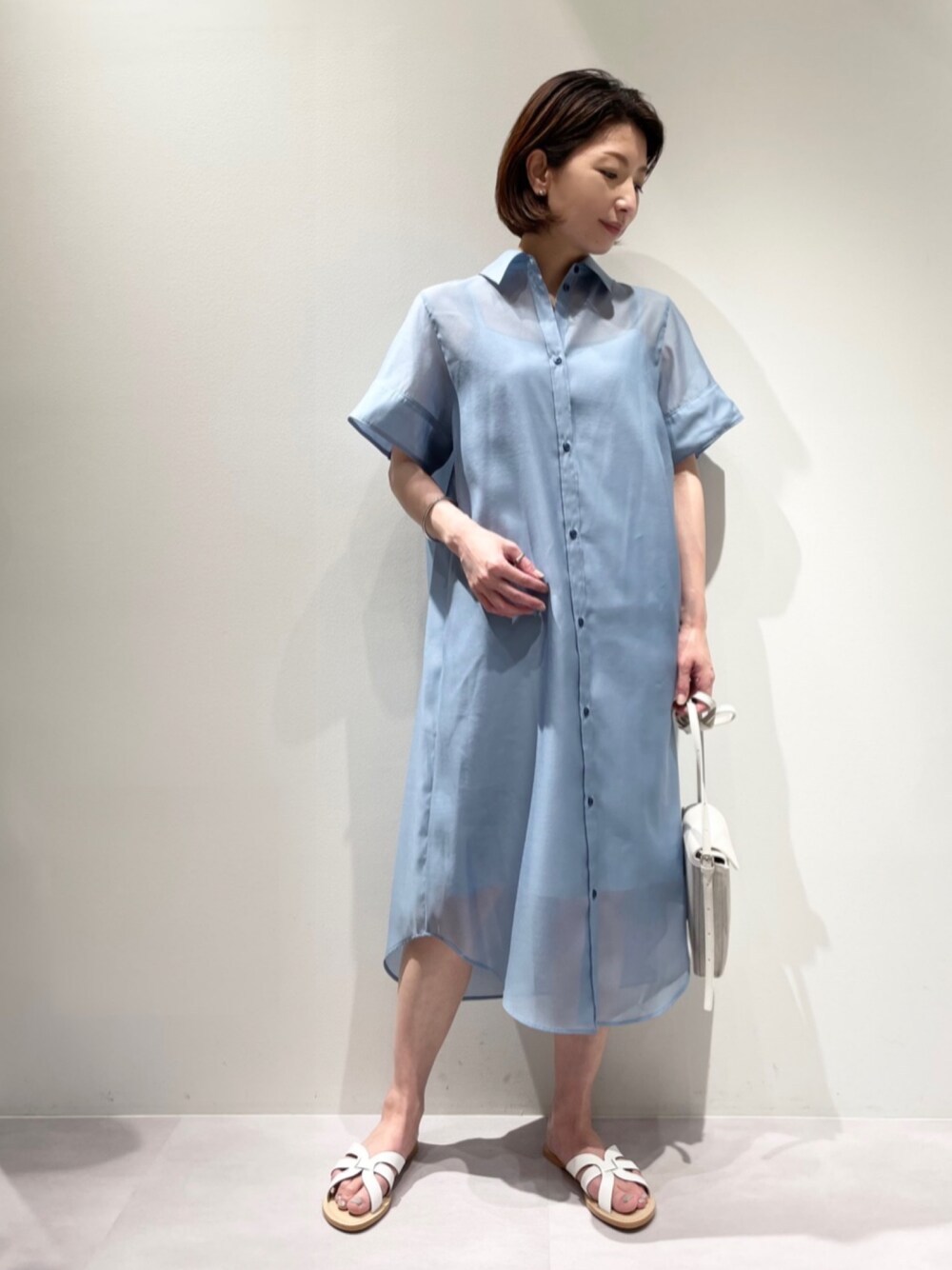 KAWAMURA(カリテ エスパル仙台東館店)のワンピース「シアーシャツワンピース」を使ったコーディネート
