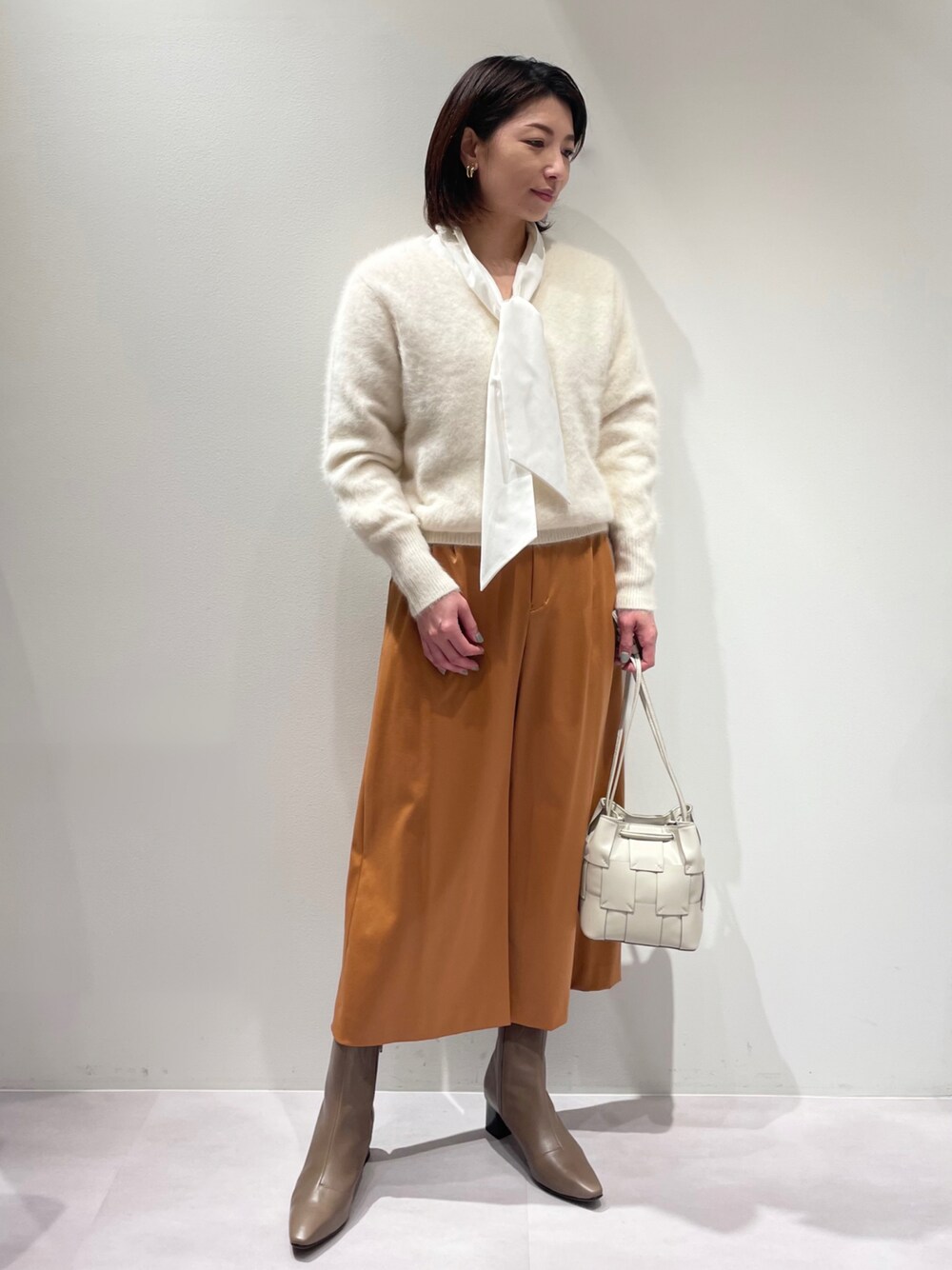ご覧いただきありがとうございます。 新作の【サテンワイドクロップドパンツ】に、ボウタイ×Vネックニットのレイヤードスタイルです。 高級感漂うサテン生地のストレッチクロップドパンツ。 サテン生地なので、ニットスタイルが重く見えず、すっきりとした仕上がりになります。 寒さが増すこれからの季節には、トレンドのボウタイブラウス取り入れて、暖かくてお洒落な着こなしがおすすめです(*^-^*)