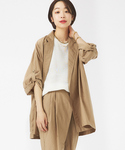 ご覧いただきありがとうございます。 梅雨時期雨におすすめ撥水SET UPコーデ✰ 撥水加工が施されたとても軽い生地のライトコートとパンツ♡ コートは、袖をまくってシャツテイストで軽く羽織れます(^^♪ パンツは、前中央の重なりが、いつものテーパードと雰囲気が変わり新鮮⭐︎ 後ろウエストゴムで楽に穿けます‼︎ セットアップ×サンダルで、休日スタイルとしてもおすすめです(*^-^*)