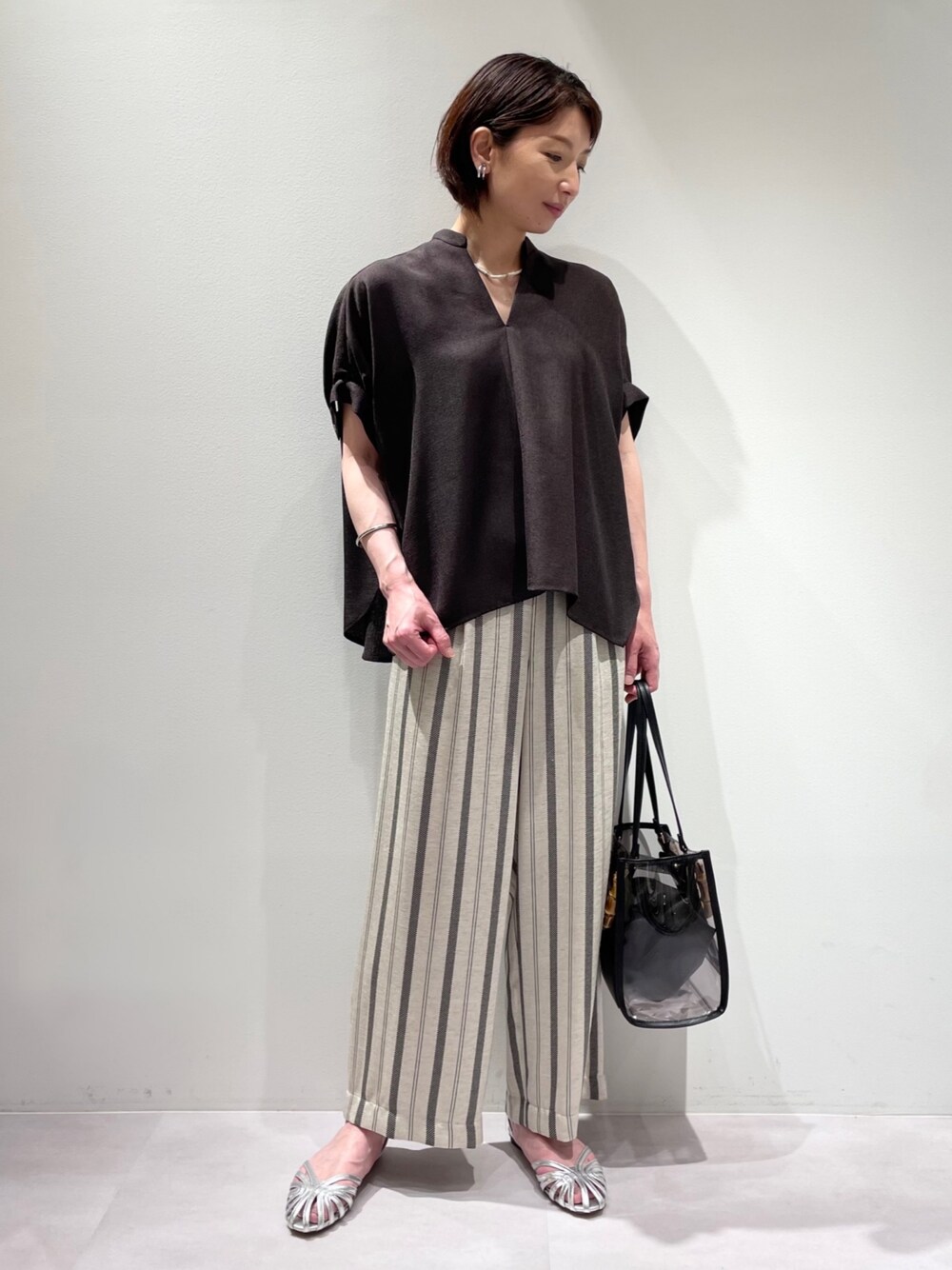 KAWAMURA(カリテ エスパル仙台東館店)のトートバッグ「Lucent/クリアバーチカル2WAY」を使ったコーディネート