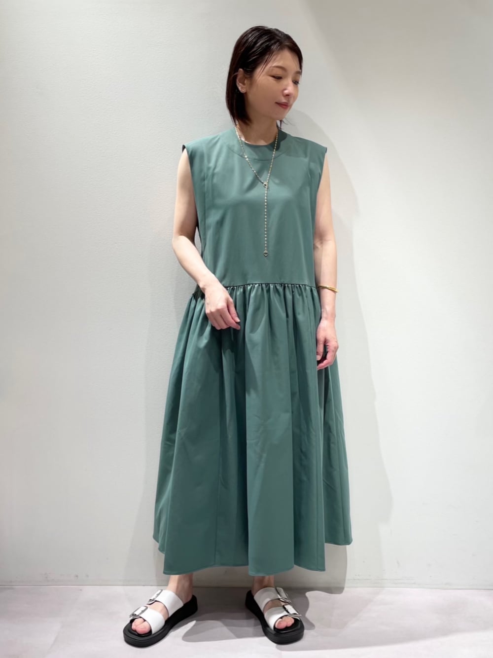 【ゆるりと着られる大人夏ワンピース♪】 【ワンピース】 着用サイズ:38サイズ ▼サイズ感 38サイズは、足首くらいの丈感で、長めでゆったりとしたサイズ感で着れました♪ トップスはボックスシルエットで二の腕がすっきりと見えるデザイン。 脇下に脇見え防止が付いていて安心✨ スカート部分は、ギャザースカートでゆったりとしたシルエットです^_^ ▼着心地・生地感 ポリエステル素材でシワになりにくく、夏に嬉しいイージーケアなワンピース✨ ゆったりとしたシルエットで体のラインが出にくく楽に着られます♪ しっかりとした生地感で、ダークグリーンとチャコールグレーは裏地が付いていませんが透け感が気になりませんでした‼︎ オフホワイトは、スカート部分に膝上くらいまでの裏地が付いております。 ▼コメント 着用したダークグリーンは、くすみがかった落ち着いた雰囲気のお色♡ 普段モノトーンが多い方にもおすすめのカラーです!! 深めのサイドポケットが付いているので、スマホも入れられて便利♪ 締め付け感の無いワンピースなので、夏休暇のお出掛けにおすすめです^_^