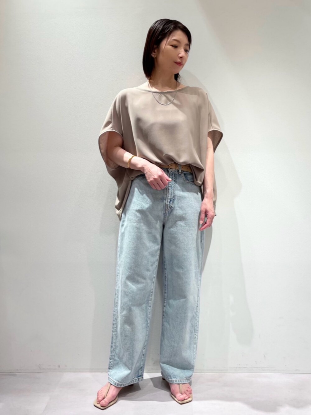 【夏におすすめシアートップスコーデ♪】 【トップス】 着用サイズ:Fサイズ ▼サイズ感 見頃から袖にかけても切り替えしがありませんので、フィット感を感じずゆったりと涼しく着られます^_^ 着丈も長くヒップをカバーしてくれて、前丈は腰下くらいになります。 ▼着心地・生地感 透け過ぎないシアー素材で、UVカット・接触冷感など真夏に着やすいブラウス✨ 着用したグレージュは、インナーの透け感が気になりませんでした‼︎ ▼コメント デニムと合わせてカジュアルにも着れて、綺麗めパンツならオフィスカジュアルにも着回し出来ます‼︎ 着るだけでこなれ感があるので、暑い季節におすすめの一枚になります^_^