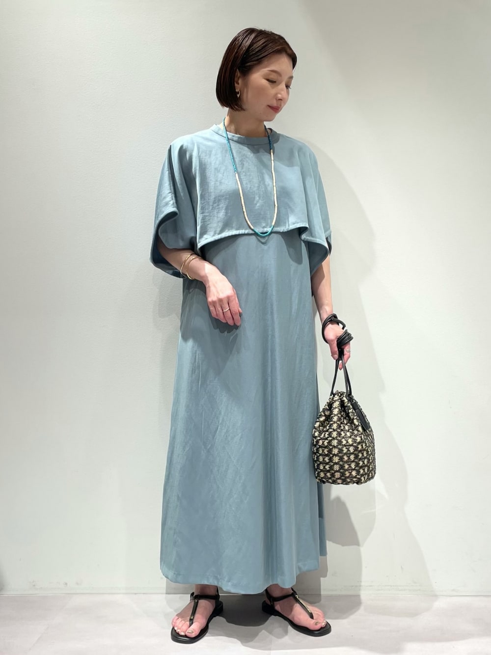 【ワンピース】 着用サイズ: 38サイズ ▼サイズ感 size: 36・38 38サイズ着用で、ワンピースの丈は足首くらいの長さになります。 ボレロは腕を通せるようになっており、ゆったりとしているので、サイズ感を気にせず羽織れます✨ ▼着心地・生地感 color: ブラック・ブルー ボレロとセットのワンピースで、それぞれ単品使いができます♪ ワンピースには、両サイドにポケットが付いていて、着脱時はサイドファスナーで着られます‼︎ リネン混ですが、滑らかな質感なので、チクチクしづらく涼しく着られますよ^_^ ▼コメント 夏らしく着映えするブルーのワンピース♡ お出掛けには、気分の上がるお色です♪ ワンピースは広がり過ぎないシルエットで、ボレロの代わりににジャケットを羽織るときちんとした印象に✨ ボレロは、後ろボタンのデザインも可愛く、タンクトップと合わせてパンツやスカートにも合わせていただけますよ^_^