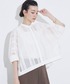 【トップス】 着用サイズ: Fサイズ ▼サイズ感 ゆったりとしたフォルムシルエット♪ 前は腰丈くらいで、後ろはヒップ下くらいの着丈で前後差があります✨ 袖丈は七分袖で、晩夏時期まで着回しいただけます‼︎ ▼着心地・生地感 color: オフホワイト・ブラック 大人っぽく着られる刺繍レースシャツ♪♪♪ 程よいハリのある生地で、前ボタンを開けて羽織りでも◎‼︎ 一枚着としても着られるので着回し万能シャツです✨ コットン・ポリエステルで、シワになりにくくお手入れし易いアイテムですよ‼︎ ▼コメント 着るだけで様になるレースシャツは、前がショート丈なので、ワンピースの羽織りにも良いですよ^_^ 【ボトム】 着用サイズ: 36サイズ ▼サイズ感 size: 36・38・40 柔らかめの平ゴムを使用したウエスト全ゴムと、太めのシルエットで、36サイズでも楽な穿き心地です♪ 丈はローヒールに合わせても床に付くことが無くちょうど良く穿けました✨ ▼着心地・生地感 color: ベージュ・チャコールグレー 接触冷感素材なので、残暑の季節まで涼しく快適に穿いていただけます♪ 晩夏のアイテムとして落ち着いたカラー展開となっており、配色のウエストがデザインポイントです! ☆手洗い可☆ ▼コメント 同素材のジレ(32510010000)とセットアップでこなれ感のあるスタイル✨ きちんと感のある素材のパンツですので、ブラウスや綺麗めニットと合わせたオフィスカジュアルコーデにもおすすめです^_^
