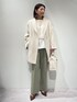 いつもご覧いただきありがとうございます^_^ 【コート】 商品名: 『ロービングオックスコート』 着用サイズ: 38サイズ ▼サイズ感 size: 36・38 程よくゆったりとしたサイズ感のミドル丈コートで、前回は36サイズを着用しましたが、今回は38サイズを着用。 38サイズの袖丈は手のひら中間くらいの長さです。 36サイズと38サイズの着丈差は1.5センチあります。 ▼着心地・生地感 color: アイボリー・ダークブラウン 軽い膨らみのあるロービング糸で織られたコートで、表地の生地感がとても可愛いですよ♪ 冬コートにありがちなずっしりとした重い感じは無く、軽くてとても着心地が良いです✨ 裏地付きで、前ボタンはスナップボタンになっております。 ☆ドライクリーニング☆ ▼コメント 襟のデザインと素材感がポイントの冬コート♡ アイボリーはお顔まわりが明るく見えて着映えするお色です✨ ダークブラウンは、ブラック×ブラウンの糸で編まれていて落ち着いた大人カラーです♪ デニム合わせで休日コーデにもおすすめですよ^_^ 【タンクトップ】 商品名: 『ブライトツイルスリットノースリーブ』 着用サイズ: Fサイズ ▼サイズ感 後ろボタンが付いていて首が開き過ぎず◎✨ スクエアネックで襟元のデザインにも拘った一枚です♪ ▼着心地・生地感 color: オフホワイト・ブラック 艶と落ち感のあるブラウス素材のノースリーブで、冬はニットやカーディガンのインナーにおすすめですよ^_^ ☆手洗い可能☆ ▼コメント 前後差のある着丈で後ろスリットのデザインが可愛いです♡ コンパクト丈ニットとのレイヤードがポイントです✨