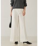 いつもご覧いただきありがとうございます^_^ 【トップス】 商品名: 『ダンボールボックスプルオーバー』 着用サイズ: Fサイズ ▼サイズ感 ラグランスリーブとワイドシルエットでゆったりとしたサイズ感です✨ 着丈は前後差があり、前は腰くらいで、後ろはヒップ下丈になります。 袖丈は手の甲が隠れるくらいの長さなので、暖かいですよ^_^♪ ▼着心地・生地感 color: アイボリー・ライトグレー・チャコールグレー 弾力のあるボンディング素材で、少しツヤがあり大人っぽく着ていただけます。 肌触りがとても滑らかで、着心地も軽くデイリーな着まわしに◎✨ ☆手洗い可能☆ ▼コメント 大人スウェットとして春先に一枚着しやすいアイテム♡ ゆったりとしたサイズ感なので、真冬は薄手のタートルやロンTなどとの重ね着スタイルがおすすめです♪ 【ボトム】 商品名: 『トラウザーストレッチデニム』 着用サイズ: 38サイズ ▼サイズ感 size: 36・38 ハイウエストシルエットで、トップスインするとさらに足長効果があります✨ 穿き始めは少し固めですが、ストレッチがきいているので徐々に馴染んで穿き易くなります^_^ 38サイズですと丈が長いので、ヒールを履くとちょうど良く穿けました‼︎ ▼着心地・生地感 color: オフホワイト・ブルー センタープレスが入った綺麗めに穿けるワイドデニム✨ 和歌山のカイハラ産の上質デニムを使用した拘りのデニムになっております♪ ☆手洗い可能☆ ▼コメント オフホワイトは、デニムのカジュアルさが無いのでオフィスカジュアルにもおすすめです♪