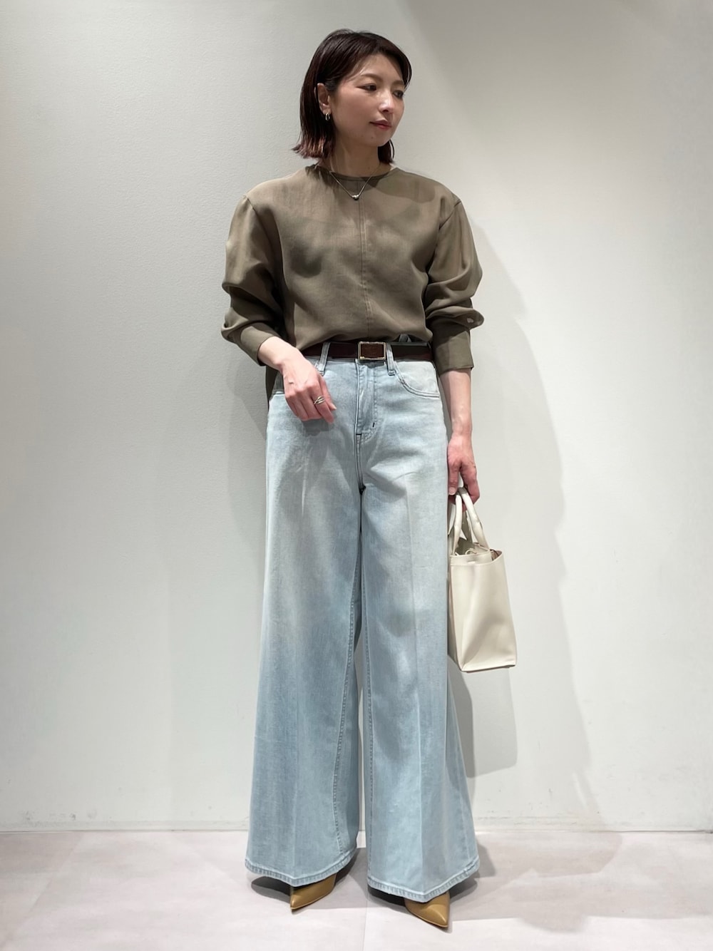 いつもご覧いただきありがとうございます^_^ 上質なシアー感のブラウスに、春の新作のHeathy DENIMを合わせた大人カジュアルコーデ✨ 【トップス】 商品名: 『シアーTブラウス』 着用サイズ: Fサイズ ▼サイズ感 size: F オーバーサイズめのゆったりとしたサイズ感✨着丈はヒップ下丈で、袖丈は手首が隠れる丈です。 ▼着心地・生地感 color: オフホワイト・カーキ・ブラック ポリエステル×コットン素材で、シワになりにくく手洗い可能♪ デイリーに着回し易いイージーケアなアイテムです^_^ ▼コメント 綺麗めパンツでオフィスカジュアルコーデにもおすすめですよ♪ 【デニム】 商品名: :『【Heathy DENIM】Wild Ginger』 着用サイズ: 38 ▼サイズ感 size: 32・34・36・38 股下が長めの設定で、丈も長めです♪ 38サイズ着用しました。ヒールパンプスに合わせると床に付かないくらいです。 ▼着心地・生地感 color: ライトブルー・ネイビー Heathy DENIMのWild Ginger(ワイルドジンジャー)は、ハイライズのバギーデニム✨ ウエストと腰まわりにリラックス感があり裾に向かって広がるシルエットです♪ 再生繊維(リヨセル)を使用しておりストレッチもきいているので、とても柔らかな穿き心地ですよ^_^ 着用しているカラーは“ネイビー”。 春夏アイテムに合わせ易いブルーに近い明るめのお色になります! ▼コメント センタープレス加工をしていて横に広がり過ぎず縦に落ちやすいシルエットです。 ウエストベルトでシンプルなトップス合わせでもスタイルアップに♪