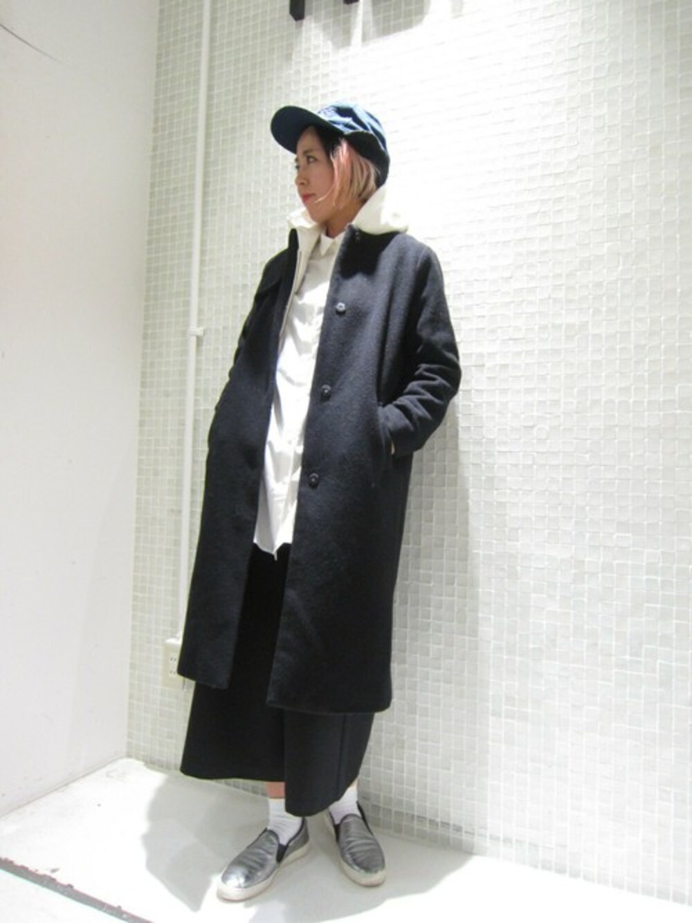 ファーティペットセットコートのティペットを取り外してメンズライクなコーデにしました。