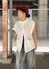 ウエストにきゅっと絞りがついていて 身幅はそのままに ウエスト位置ができる 優秀ベストです! 襟の高さも高く 首の短い私にもおさまってくれます!