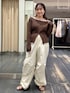 タンクと長袖トップスが セットになったニット! タイトすぎないので一枚で着ても 可愛いです! ワイドパンツと一緒に着るのが ポイントです!