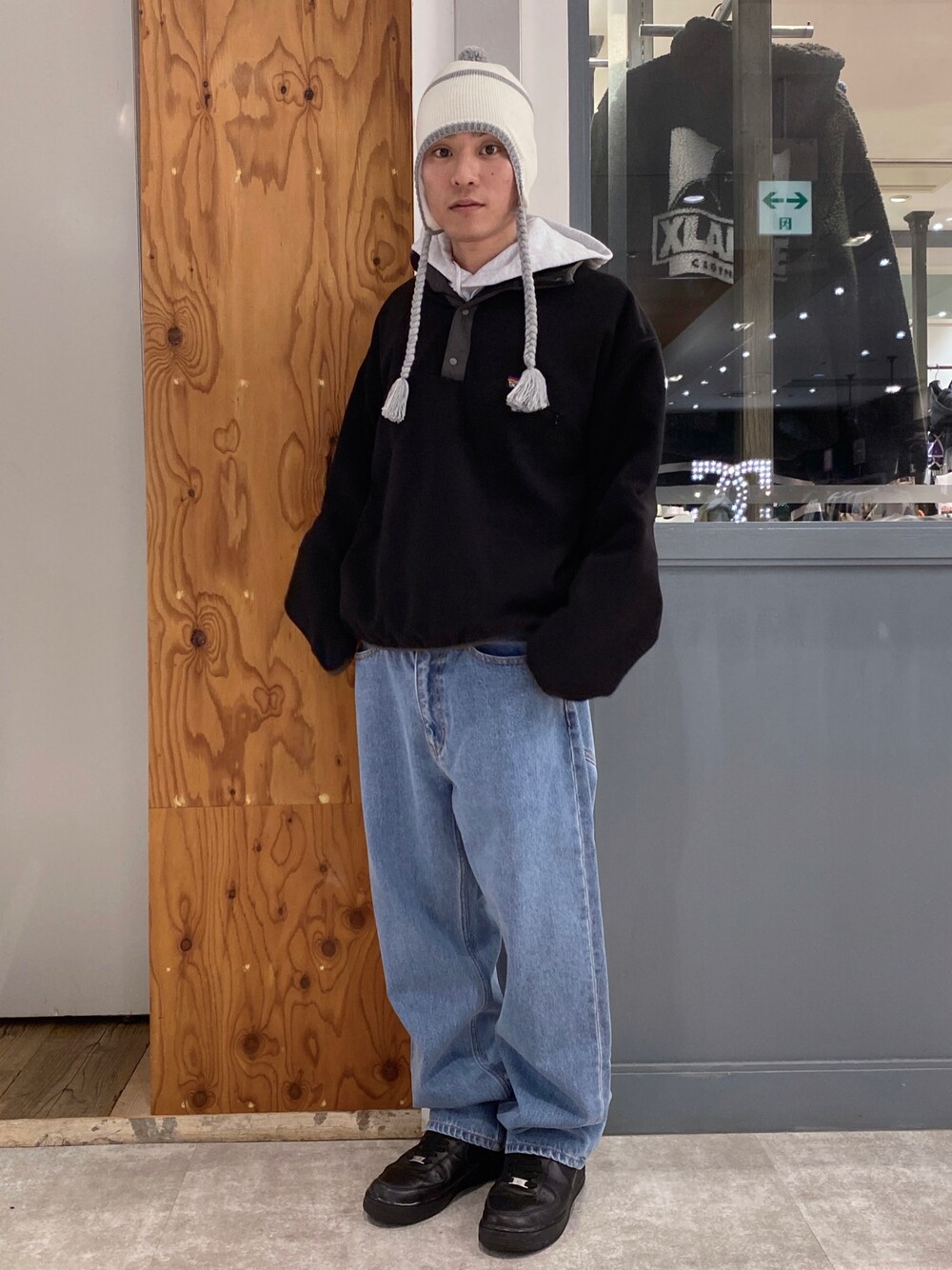 香村大貴(XLARGE原宿)のニットキャップ/ビーニー「LINE KNIT BEANIE」を使ったコーディネート