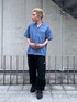 水色が目を引くように、黒のボトムと合わせてコーディネート!!今年は個人的に水色がめちゃくちゃ熱いのでオススメ🥵 Instagram kd0708