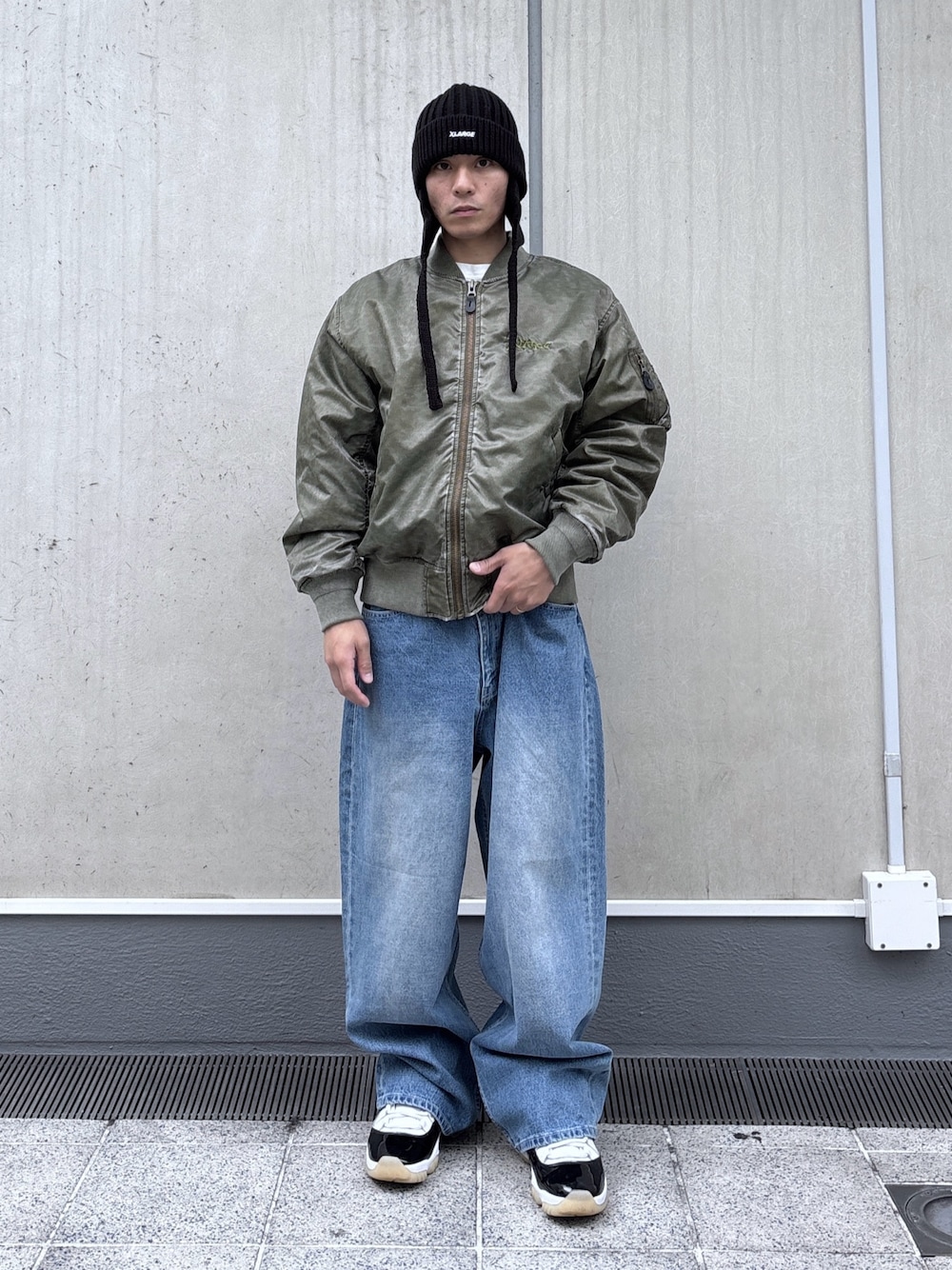 香村大貴(XLARGE原宿)のMA-1「SNOW WASH MA-1」を使ったコーディネート