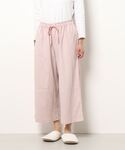 凹凸感が涼しげなサッカー素材のルームウェア。トップは胸元の切り替えとギャザーがポイント。ボトムはややワイドな八分丈。