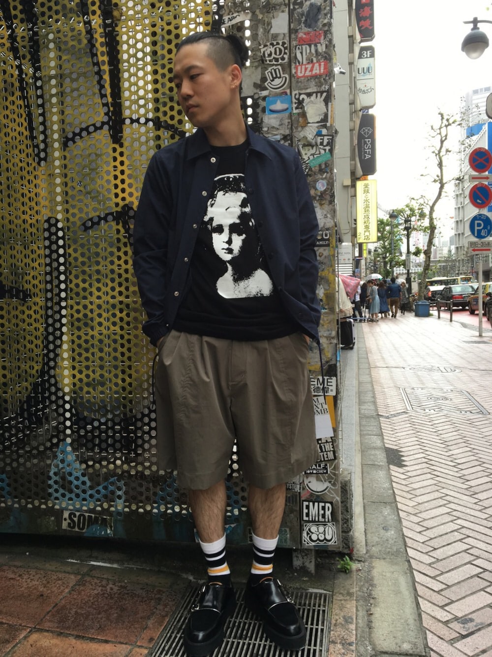 hombreninoのコーチジャケット。遠目では気付きにくいですが、全面にパンチングが施されており、まるでメッシュの様な通気性を持っています。夏場でもTシャツの上に羽織って涼しく着れる一着。