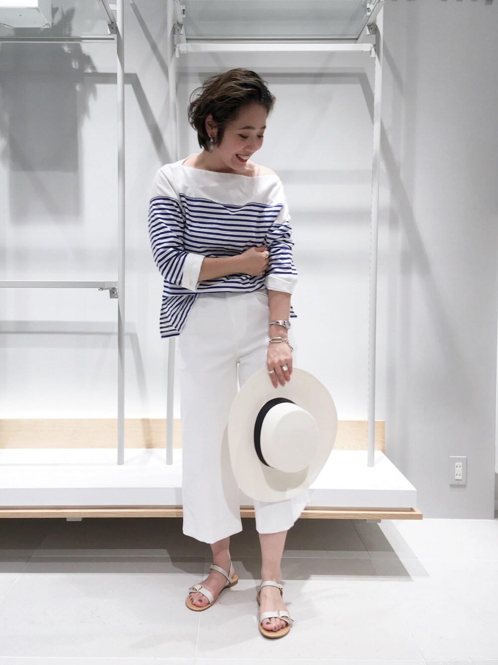162センチ/ショートヘア やっぱり、夏はボーダーが着たくなる! ワンショルダーにして着るのがオススメです! ✔︎Instagram:@kimura_rougevif インスタもよかったら覗いてください🍒 (ホームより飛べます)