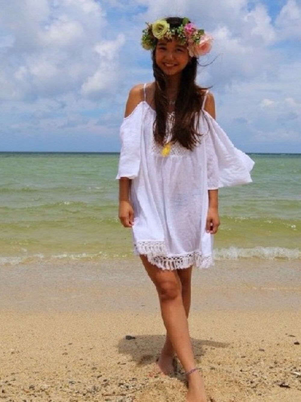 沖縄へリフレッシュしに行ってきました♡ さらっと着れるワンピースは小麦肌にぴったり♡ 形も可愛くて、お気に入り!