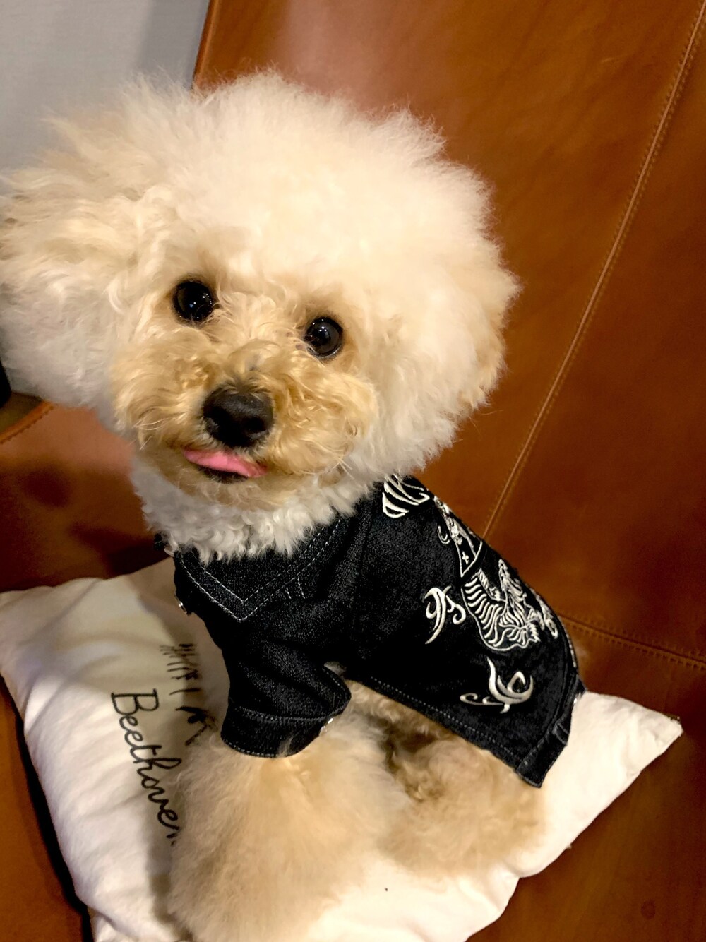 DIESEL初のDog collection🐶✨✨ 2,8kgのトイプードル君に3Sを着せています🌟 伸縮性のある生地感で前見頃はマジックテープになっているので着脱がしやすいです!