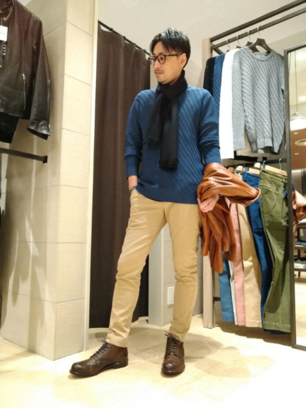 こんにちは! ダーナヴィエ ルクアイーレ店です! 今週は新作の中からニットのご紹介です‼ 最近は本当に寒く感じる日が多くなってきました。いつもより寒くなるのが早い気がします! 今くらいの気温になってくるとニットアイテムは気になるものの1つですよね^_^ こちらのブルーのニットは、身頃部分が大柄なヘリンボン調で袖部分は違う細かな織になっており、さりげない柄違いのコンビネーションニットです! 着心地もほどよいフィット感でインナーとしても、また1枚で着ていただいても使いやすいシンプルな1着となっております! 色違いのグレーもいい色で、こちらのカラーもオススメです^_^ ダーナヴィエ ルクアイーレ店では、本日より期間限定にて、こちらのニット含めた対象品番ご購入でメンバーズポイント1000Pプレゼントキャンペーンを開催致します! 今の季節のコーディネートに、またこれからの冬支度に、是非店頭へ見にいらして下さい^_^ ニット 632-0275001/110色/Lサイズ/¥16,280(税込) パンツ(entre amis) 632-0117514/040色/Mサイズ/¥25,300(税込) シューズ(PADRONE) 632-9266506/050色/Lサイズ/¥37,400(税込) マフラー 632-0263002/120色/Fサイズ/¥12,980(税込)