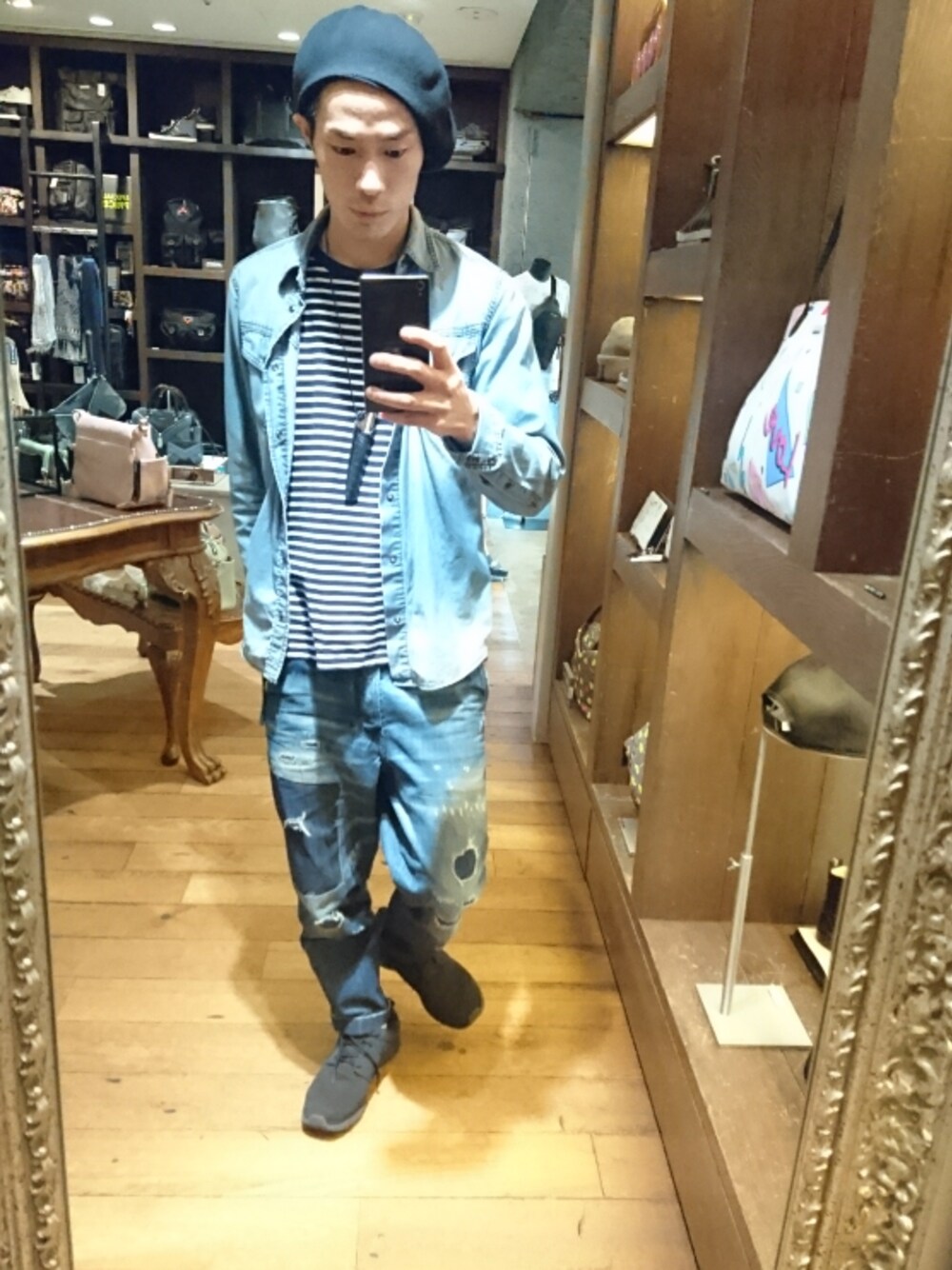 デニム×デニム 春っぽくボーダーを合わせて♪
