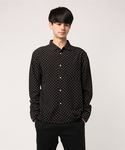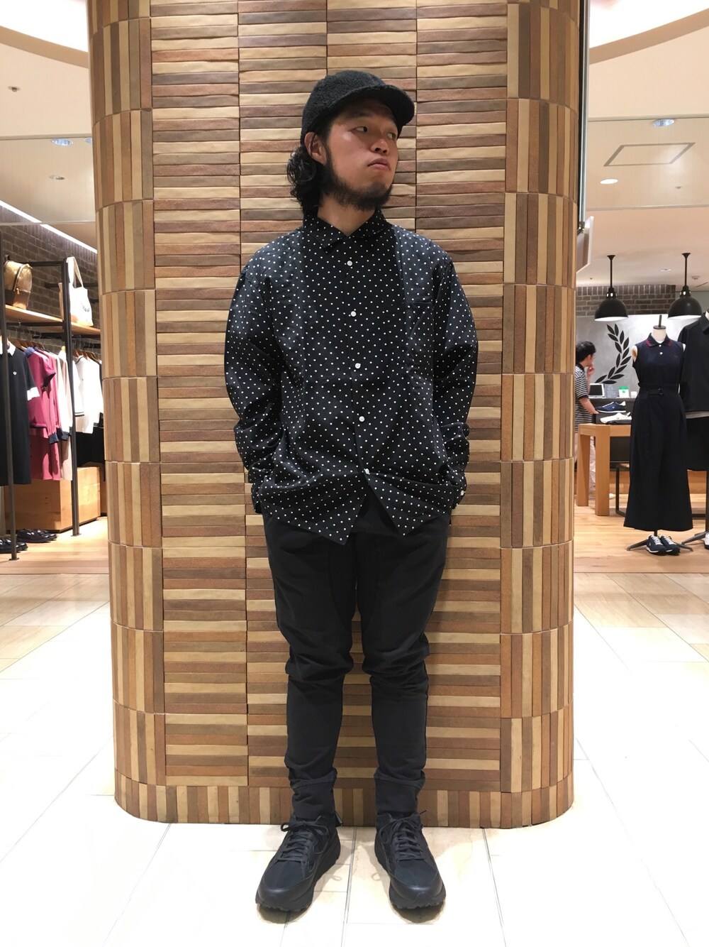 オールブラックでコーディネートを組んでみました! ドットやフリースで上半身は可愛く、黒のパンツやレザー使いのイカしたスニーカーで下半身はカッコよくまとめました! この上下のバランスは個人的に好みです。