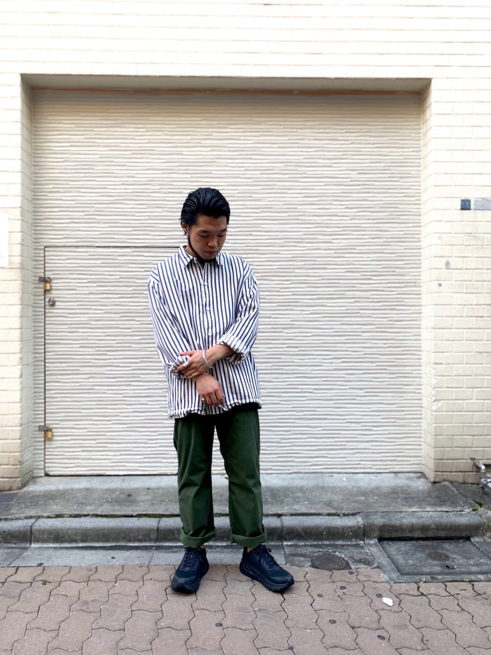 シンプルな大人秋スタイル ストライプシャツはいつ何時でも使える 超万能アイテムです。