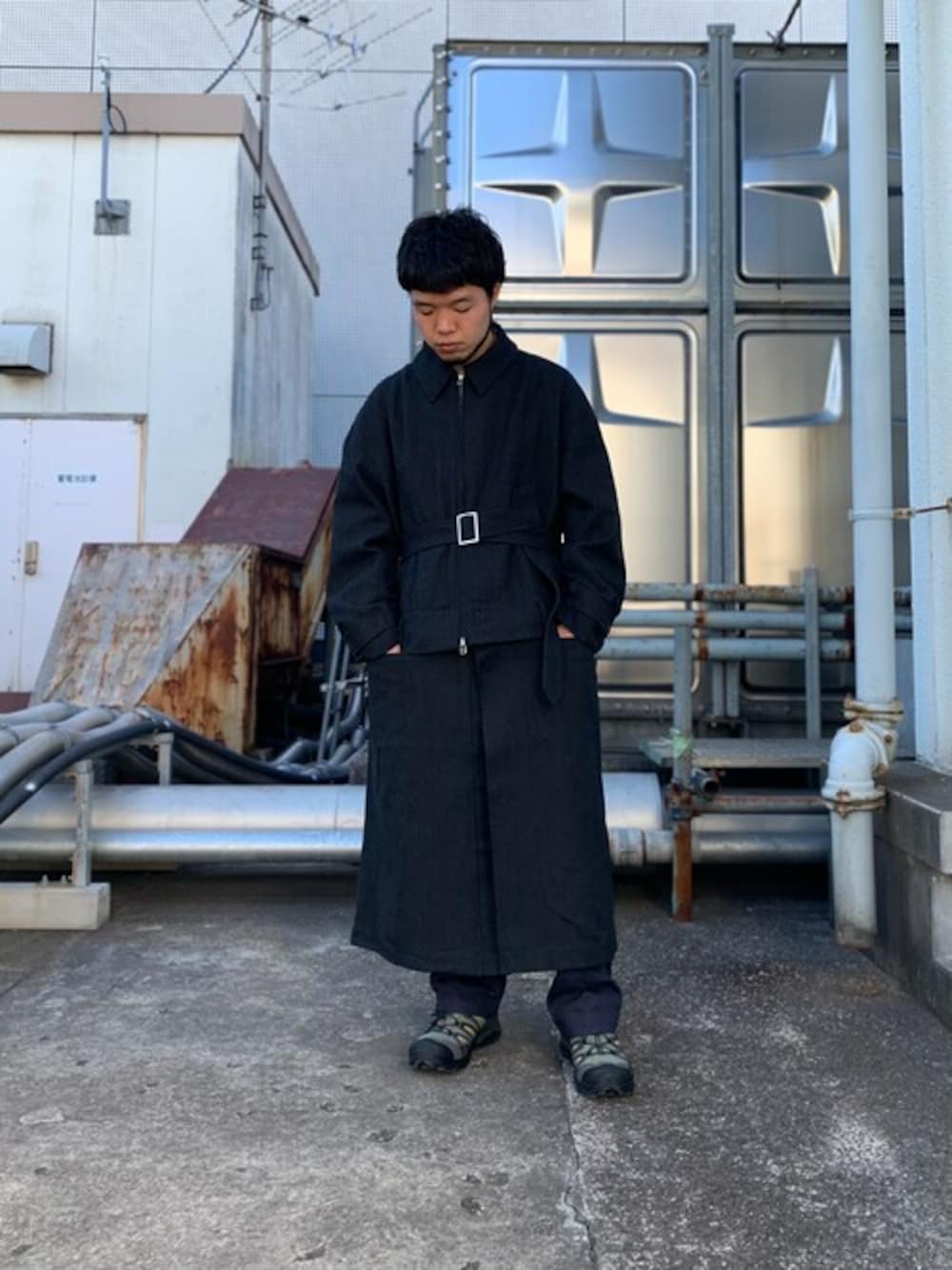 meanswhileコートコーデその③ ベルト位置を変えるだけでモードな佇まいに。