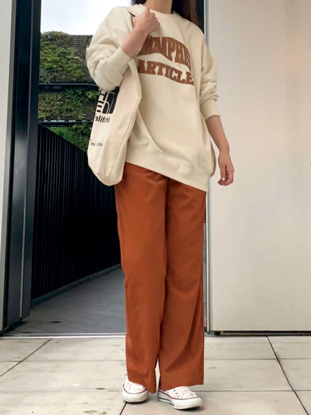 kuririn(CORNERS)のスウェット「裏起毛カレッジロゴビッグシルエットスウェットトレーナー」を使ったコーディネート