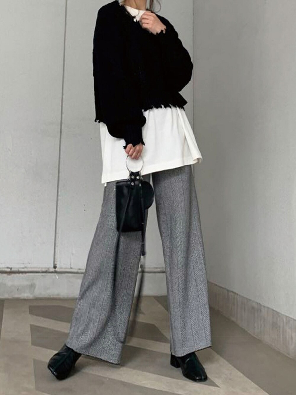 ダメージケーブル深Vニットのレイヤードコーデ zozotownでタイムセールやってます😊 instagram→corners.official instagram→kuririn18hao