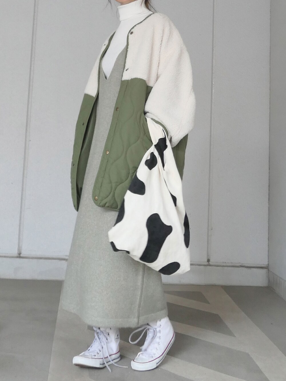 kuririn(CORNERS)のブルゾン「キルティング×ボア切替M-65ショートコート」を使ったコーディネート