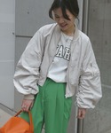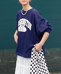kuririn(CORNERS)のスウェット「CORNERS by KR カレッジロゴボリュームスリーブスウェット」を使ったコーディネート