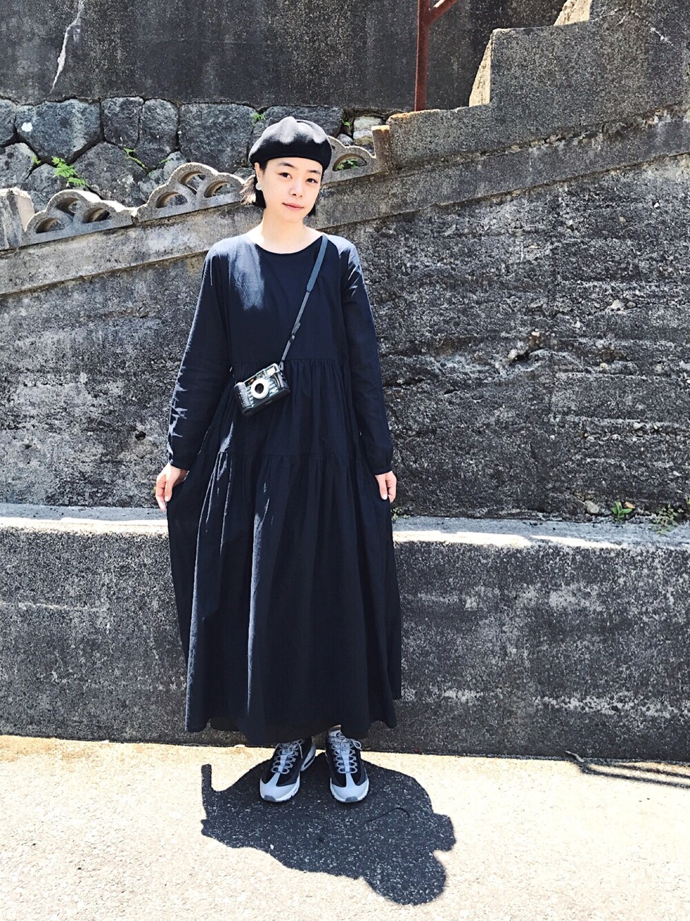 無地のワンピースには ゴツめのAIR MAXがよく合うね。