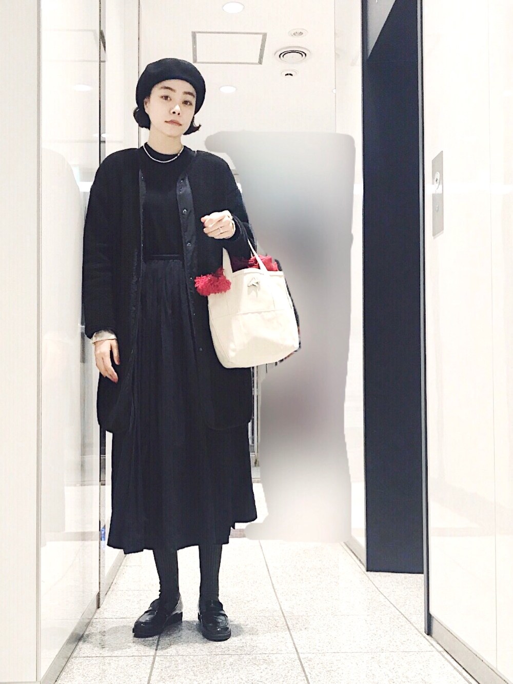 ポンテデピエのカーキ色の ハイソックスを履いています。 抜群に暖かく、履き心地いいです。