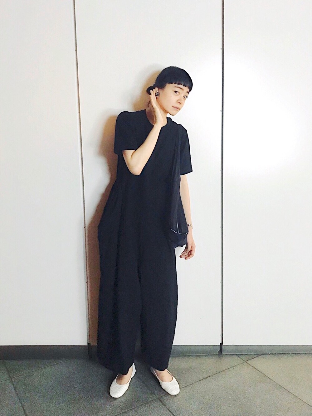 おニューのオールインワン、 ゆったりで着やすいです。 耳元にはもちろんdesign sixを。