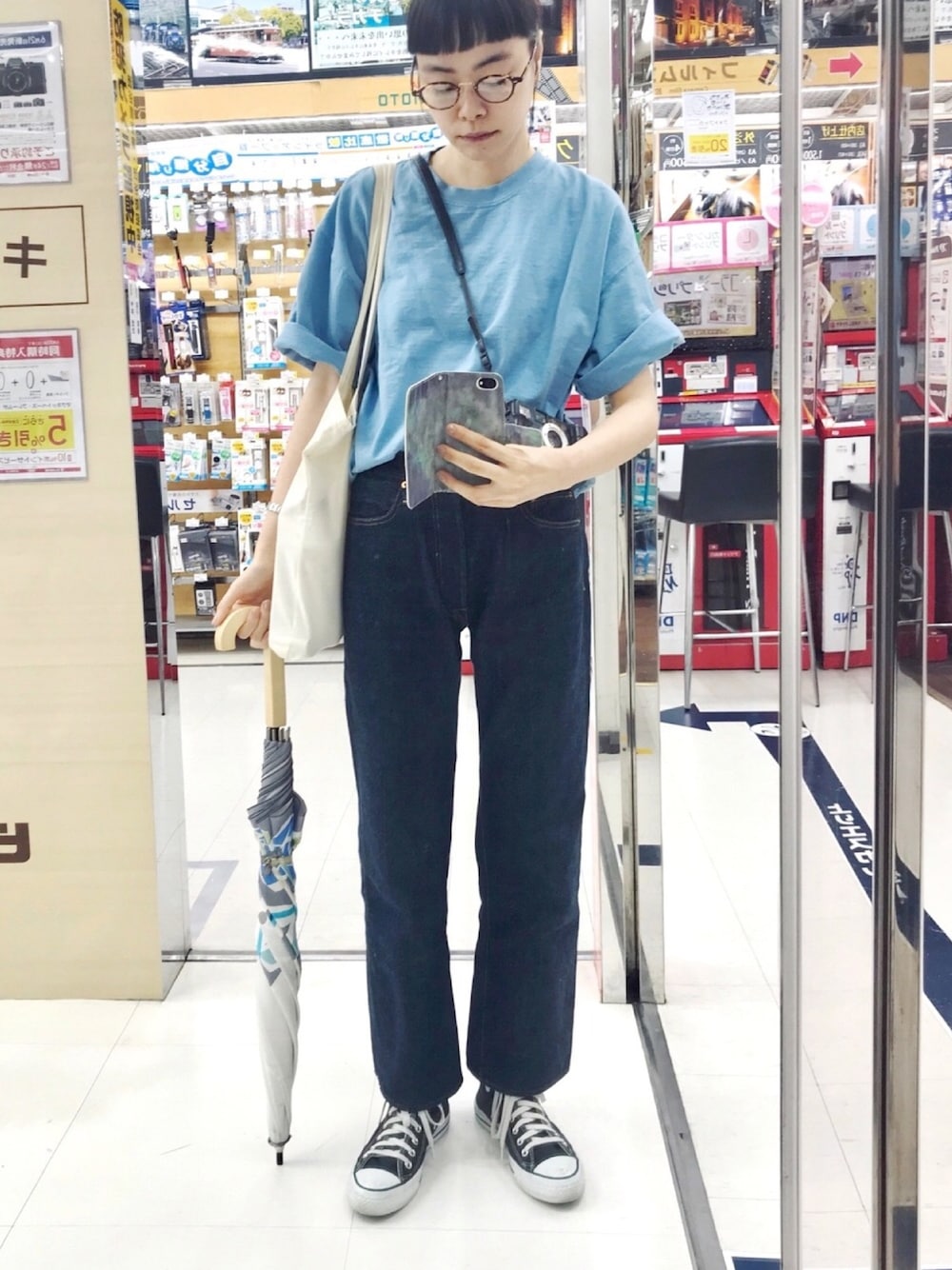 梅雨ですね。 水色のTシャツが雨に合います☂️ フイルムの現像出しに来たビックカメラにて。