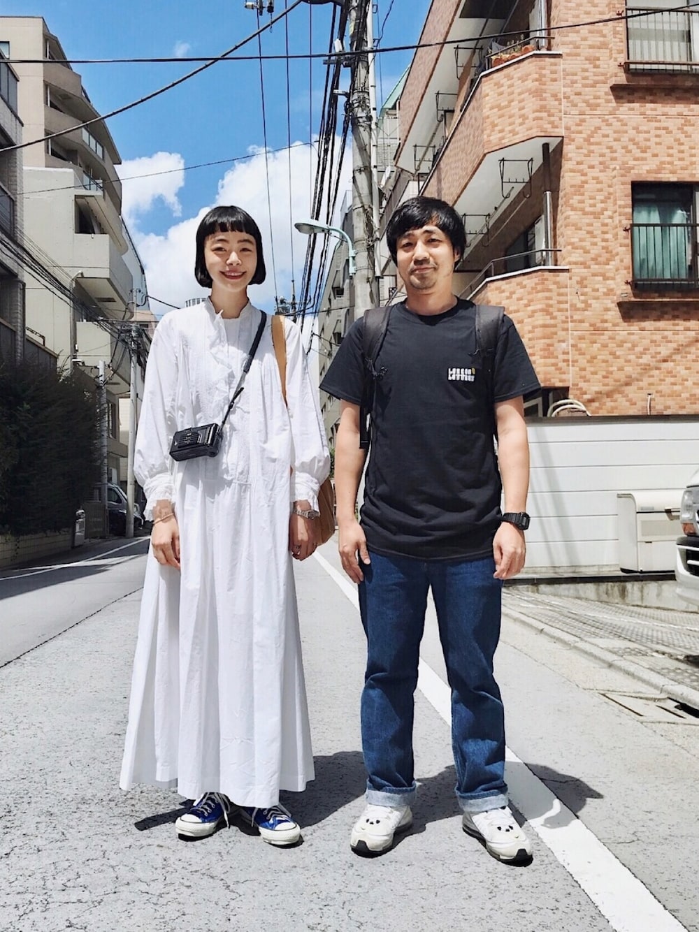 撮影終わりの、ある晴れた日。 ヘアメイクのLIM 原さんと。 WEARは、ハラペチさん( @peccino ) ビンテージのワンピースは、 奇跡のサイズぴったり。
