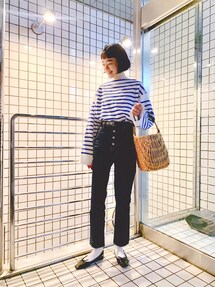 みなさん、ZOZOの「マルチサイズ」は もう試しましたか??? 身長と体重入れるだけで、 本当に自分のサイズが出てきたよ🤭 170cmの私も絶妙に良い丈感のパンツ👖 相変わらずボーダーばかりの日々🚢