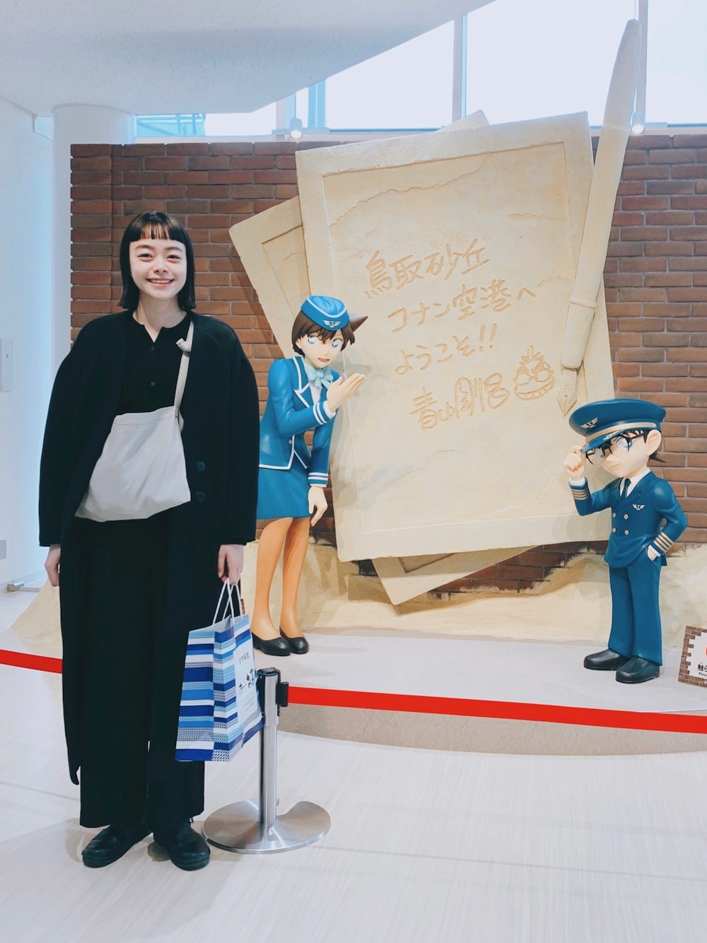 帰省していたので、 どうしても着回しになりますね。 飛行機なので疲れない服装で✈️ この場所は、鳥取砂丘コナン空港です。