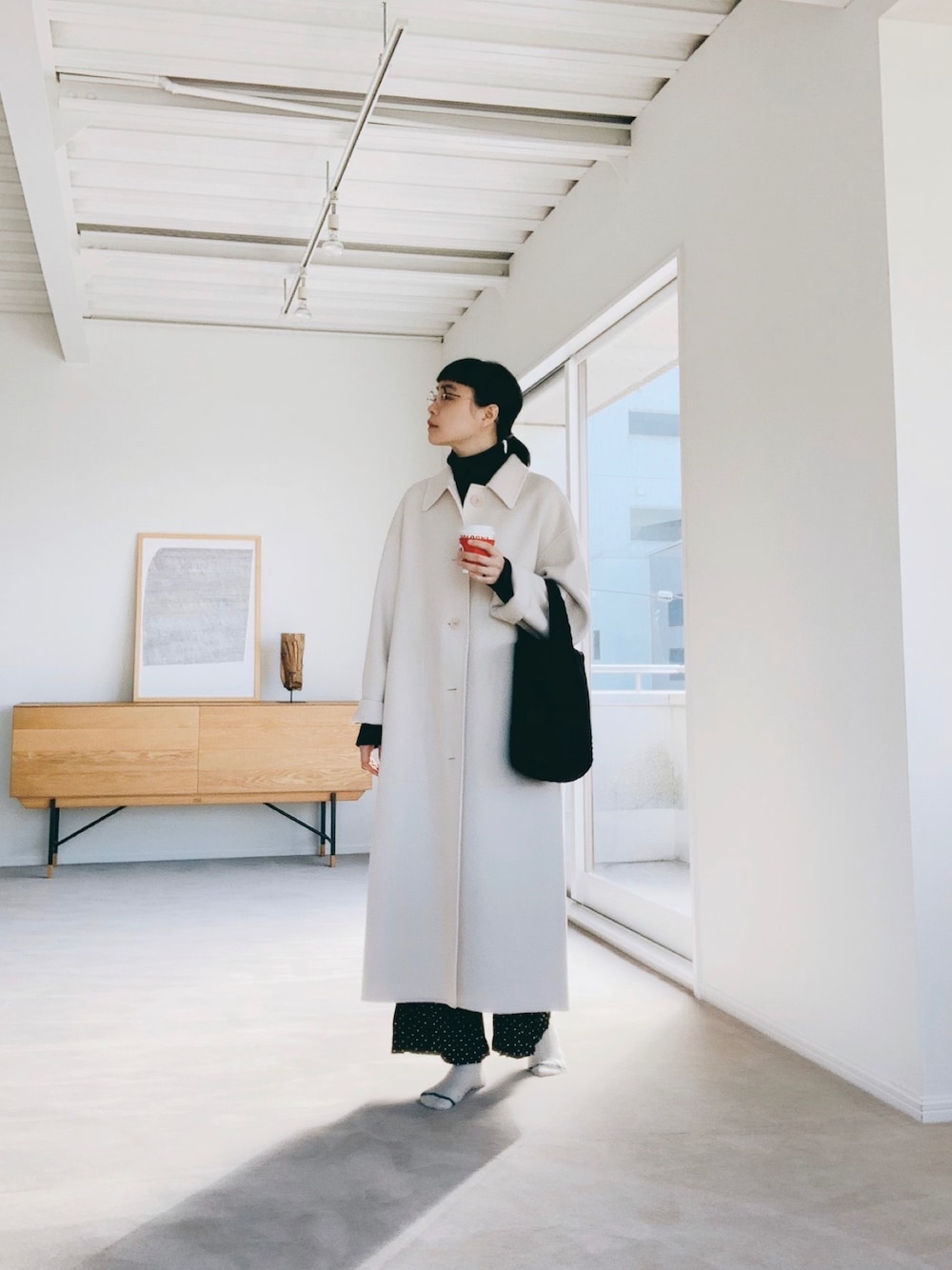 これはスタジオの中のため、 靴下ですが、この日の靴はタグ付け🏷 ワンピースにこのパンツ、 よく合うなぁ。
