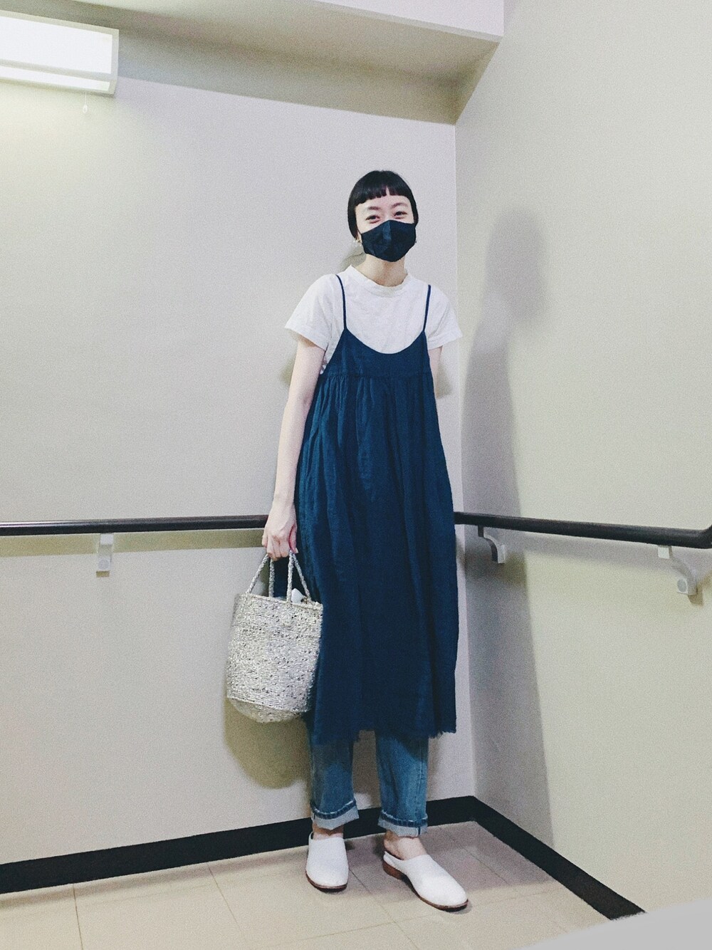 キャミワンピース好きなんですよね。 ブルートーンに合わせて、 実はマスクもネイビーなんです🌃