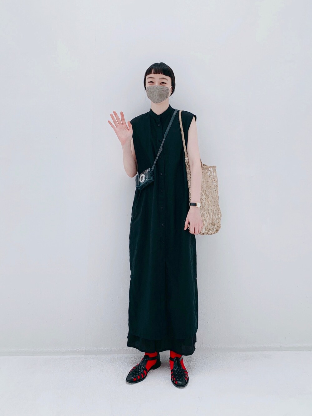 Kanocoのかごバッグ「ABACA NET ONE HANDLE TOTE」を使ったコーディネート