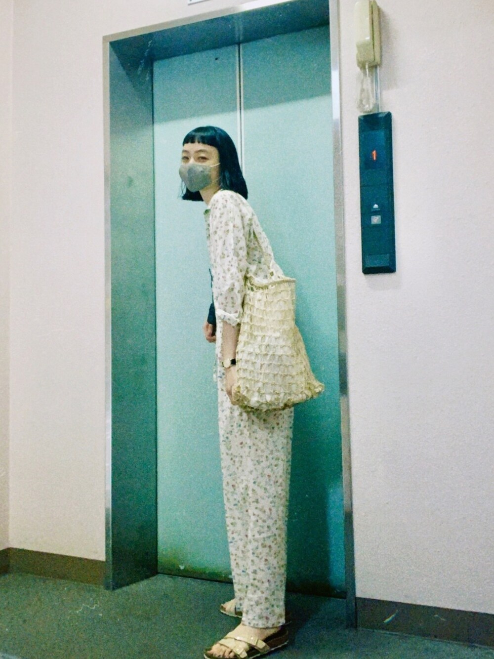 一目惚れした花柄サロペット💐 今日は少し寒いので、長袖でぴったり。 最近はいつも同じバッグばかり。