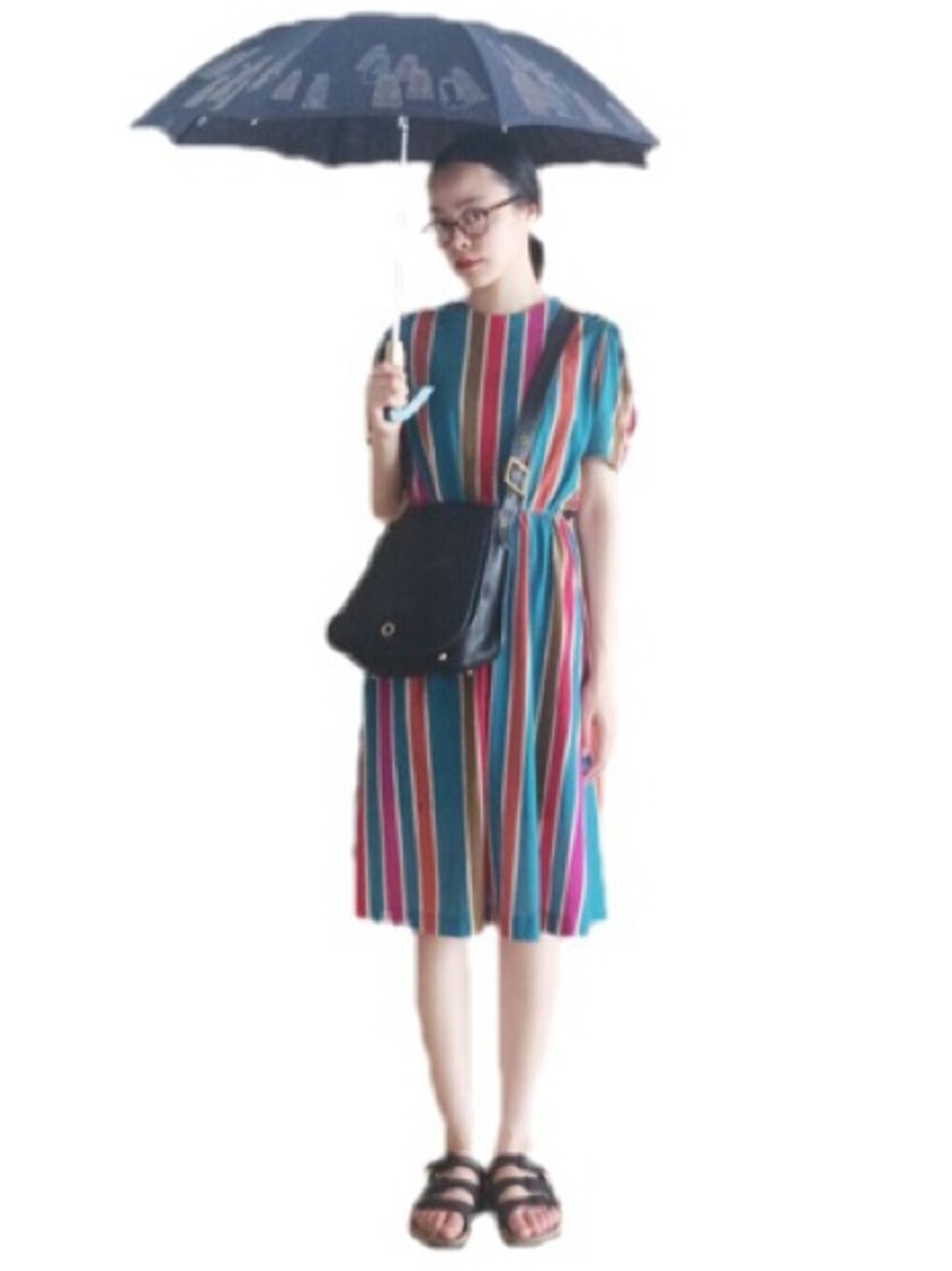古着のワンピース、 スタイリストさんに貰いました。 日傘は、鈴木マサルさん。 ペンギン柄だよ。