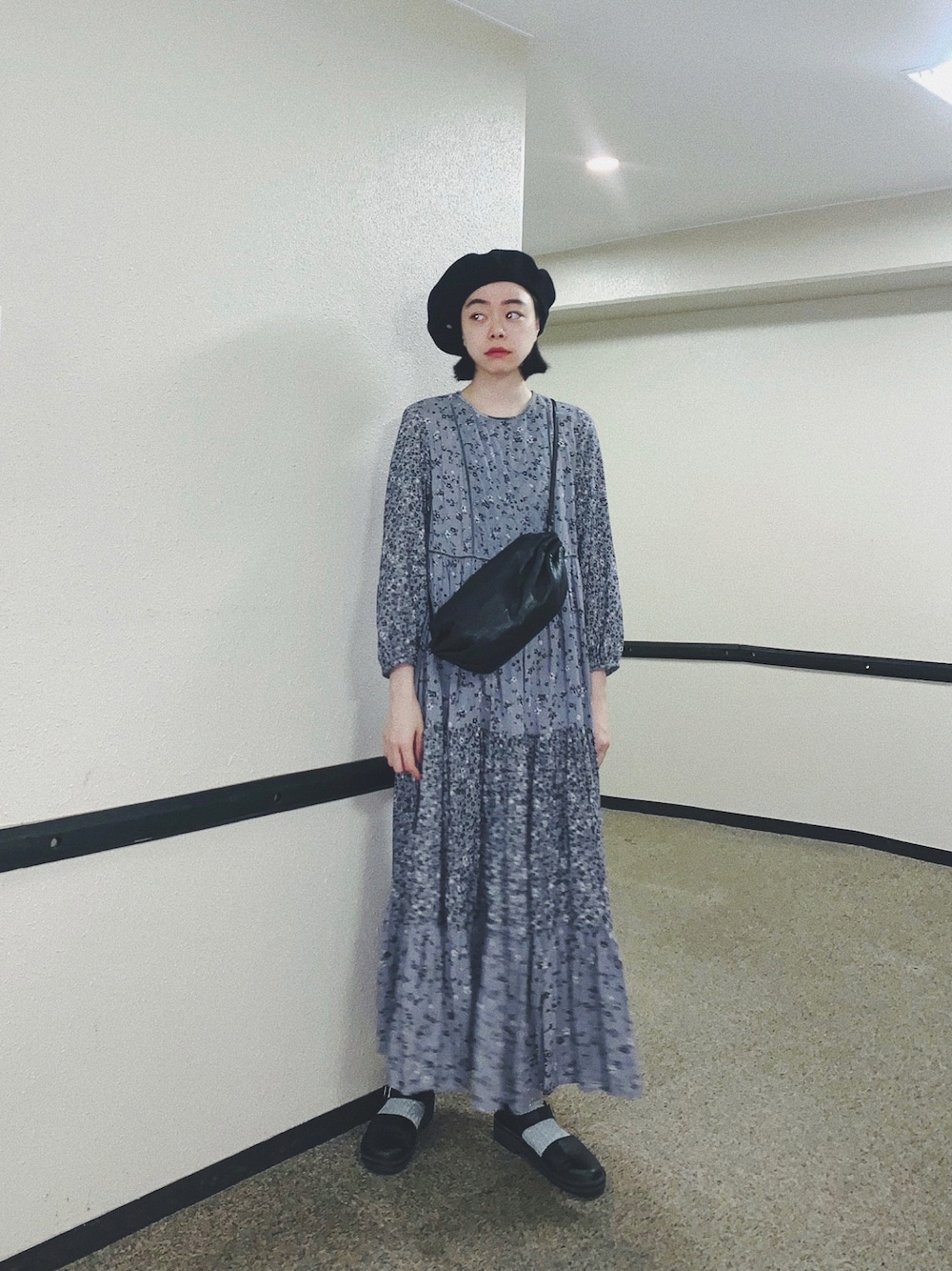 紫のワンピースに合わせて、 紫がかったピンクのリップを塗りました。 久しぶりに晴れたので、アウター無し!