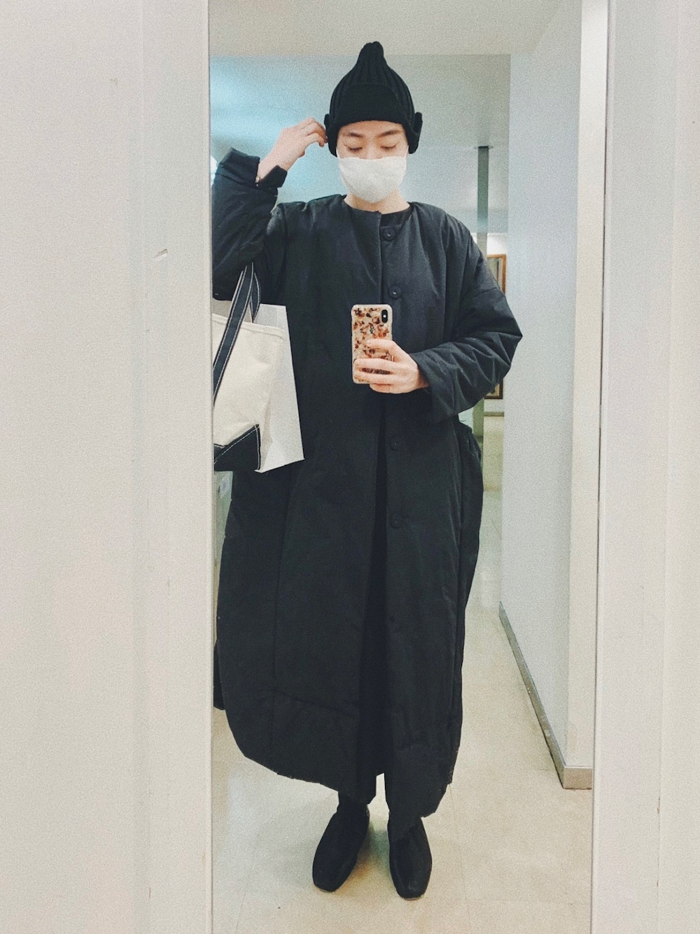 安心なブラック。 見えないけどコートの中には、 コラボワンピースを着てるよ。 ボリュームたっぷりだから、 タイツがワンピースにまとわりついたりしないよ。 冬のストレス1つ減りました😂⛄️